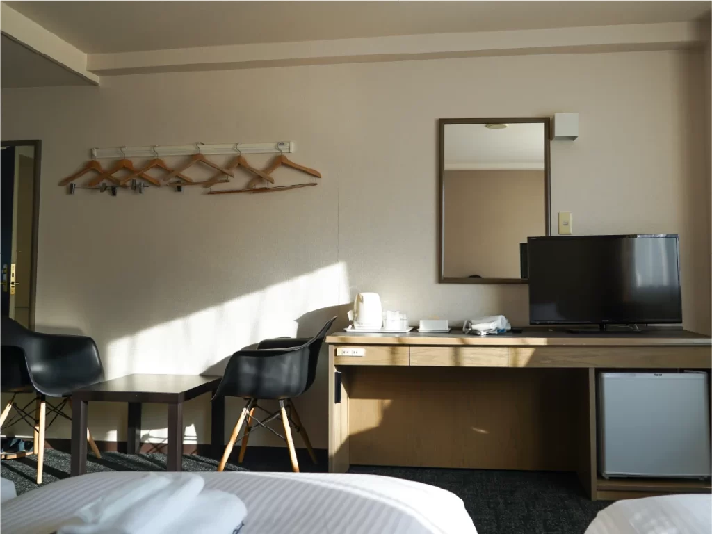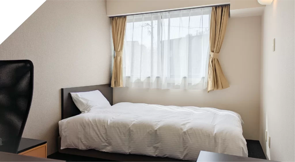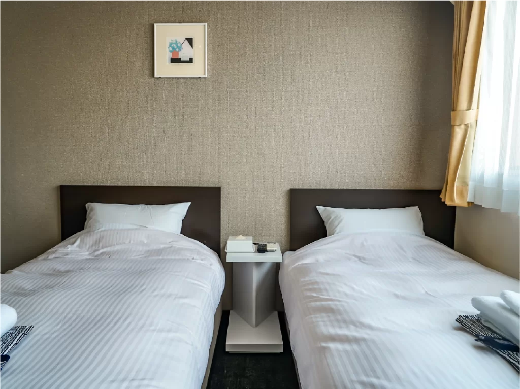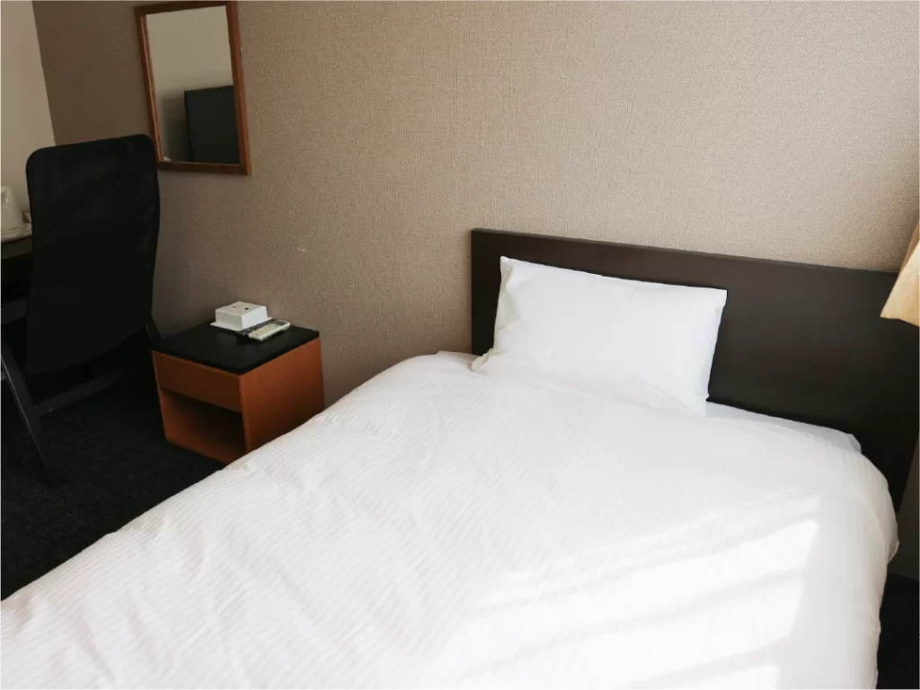 シングルルーム全室セミダブルベッドを採用。ビジネスや一人旅でも、広めのベッドでゆっくりとお休みいただけます。