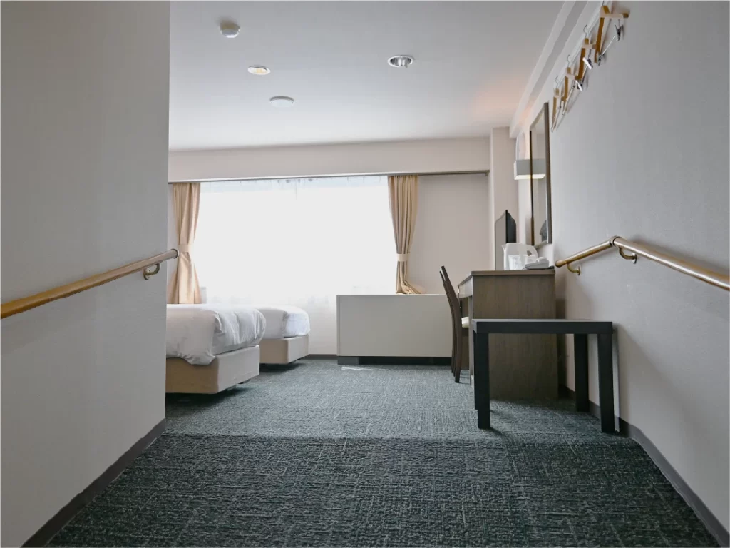 2台のベッドを配置した、機能的で使い勝手の良いお部屋。フライトや旅行前後のリラックスタイムに最適です。